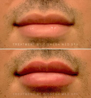 Absolutely. Men may also enjoy natural looking, enhanced lips when receiving treatment from Cienega Medical. Please see our men’s lip filler before and after photos.